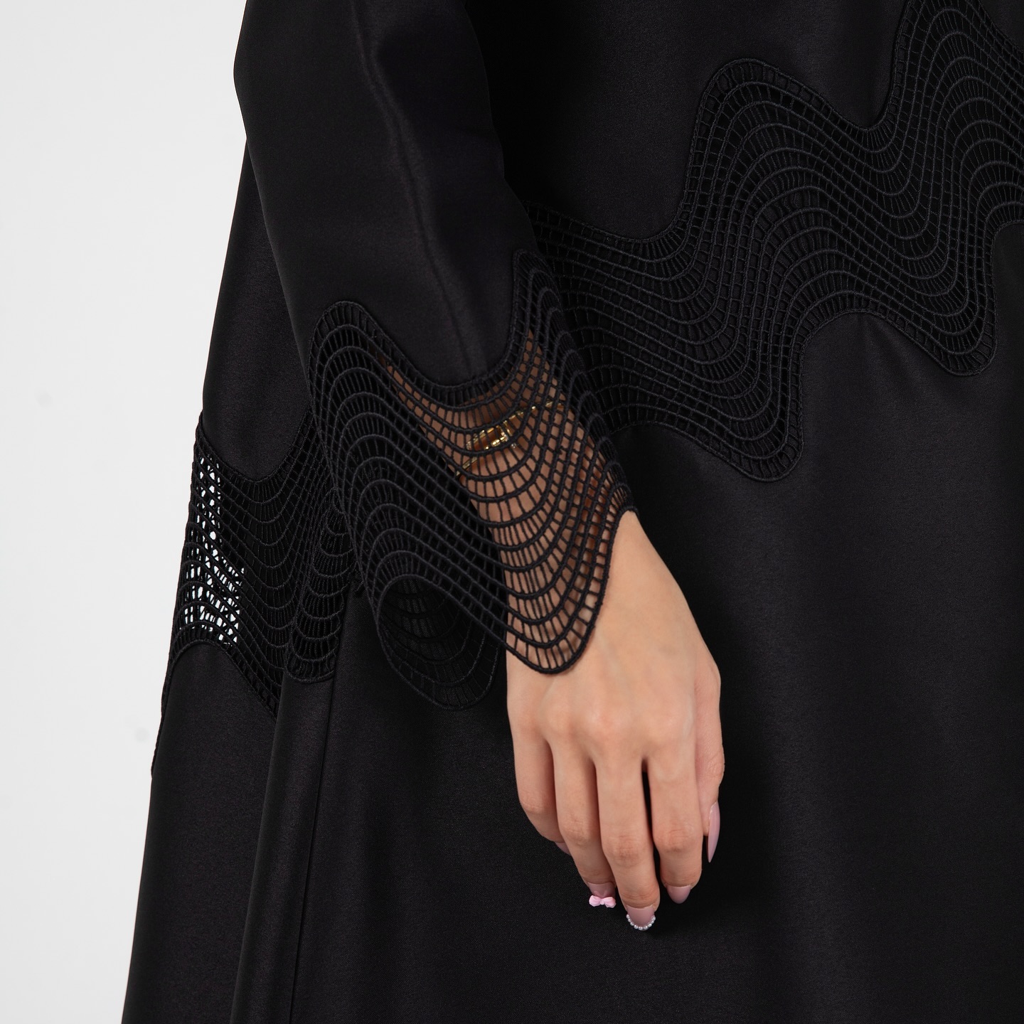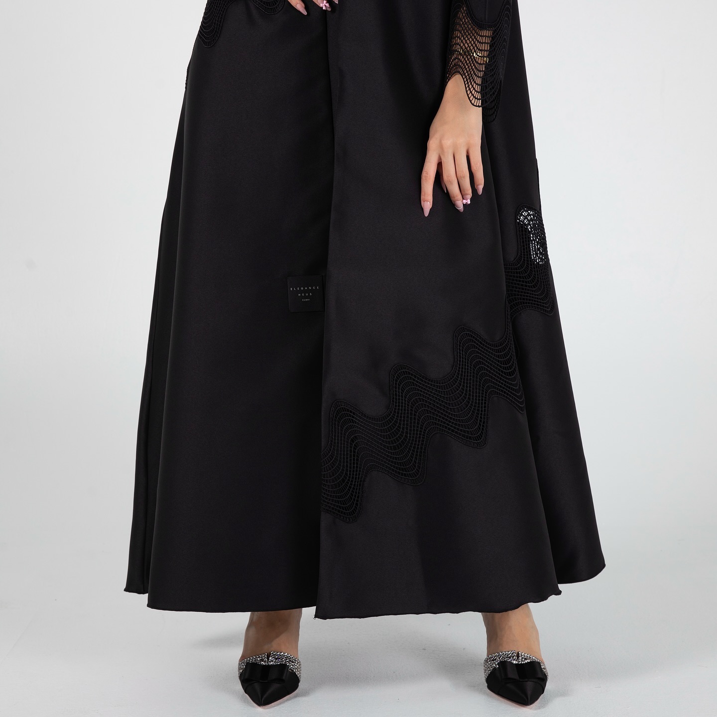عباية A03 من Elegance Heus تجمع بين البساطة والأناقة بتطريز موجي ناعم على الأطراف. تصميم أسود كلاسيكي بخامة فاخرة، يمنحك حضورًا هادئًا ومتوازنًا في الطلعات اليومية والمناسبات الراقية. تفرّدي بذوقك الرفيع.